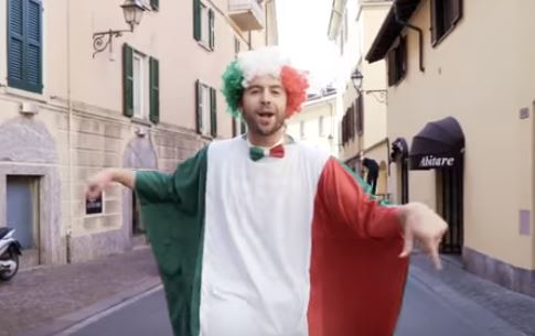 “Nove anni fa a Philadelphia, conobbi la mia bella Elena e dopo un po’ mi portò nel Bel Paese e ne sarò per sempre grato” canta in una strofa della canzone. E poi, da buon Americano che si rispetti, non poteva mancare un accenno al cibo: “I love Italy, expecially pizzoccheri”.