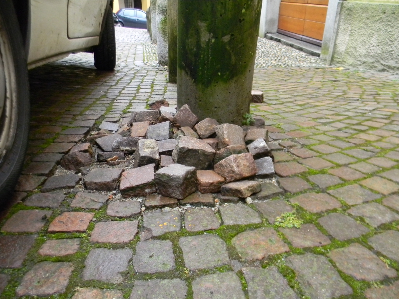 LECCO – Buchi, sanpietrini sparsi qua e la ed evidenti disconnessioni del porfido alquanto insidiose soprattutto per le persone anziane.