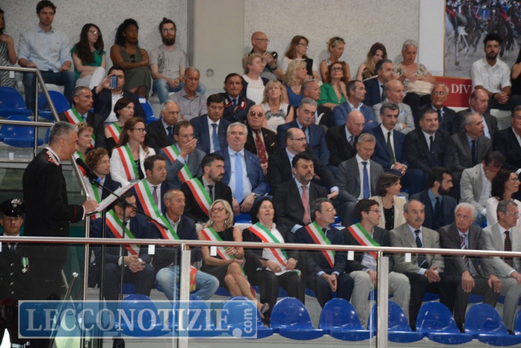 Il comandante provinciale Pasquale Del Gaudio interviene alle celebrazioni per il 204° Annuale di Fondazione dell’Arma, che martedì pomeriggio ha riunito le massime autorità civili, militari e religiose della provincia, di una rappresentanza delle varie componenti dell’Arma presenti sul territorio provinciale lecchese, al PalaTaurus dove sono state ospitati i festeggiamenti.