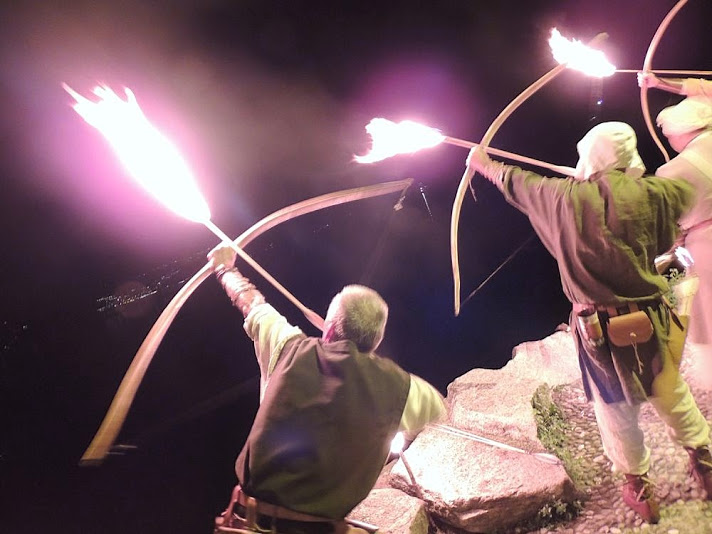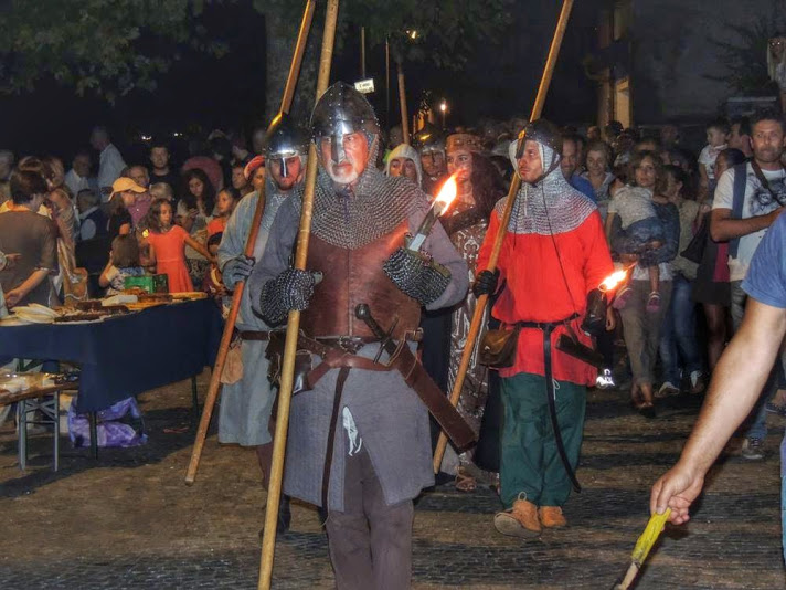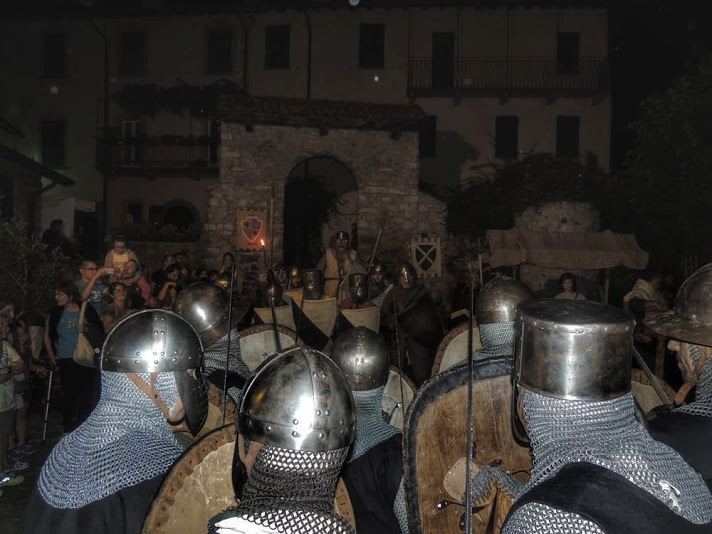 La giornata di domenica è passata tra esibizioni di arti marziali e simulazioni di combattimenti, prove di tiro con l’arco, esecuzione di lavori artigianali con gli strumenti manuali del tempo, poi verso l’imbrunire la musica di cornamusa e tamburo è arrivata quasi magicamente dal lago. Era solo la premessa: mentre sulla riva si andava formando il corteo di ricevimento, alle torce che schiarivano le prime ombre, i saltimbanchi intrattenevano il pubblico in attesa di uno sbarco più significativo.
