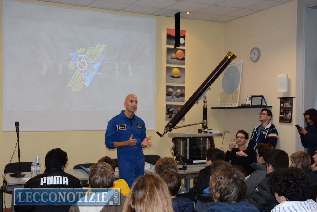 Infine la giornata clou con l’arrivo a Lecco del noto astronauta che lunedì mattina ha incontrato gli studenti della classe terza delle medie di Calolziocorte, di Villasanta, Cesano Maderno e Lugano, scuole che si erano precedentemente collegate in diretta con Parmitano dalla stazione internazionale.