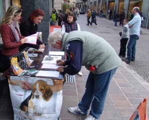 LECCO – Si è conclusa con un risultato senza dubbio positivo,  l’iniziativa indetta dalla LAV (Lega Anti Vivisezione) che è scesa nelle principali piazze italiane per due weekend di sensibilizzazione e raccolta firme contro la sperimentazione scientifica sugli animali. La sezione lecchese della LAV, nelle giornate di sabato 17 e 24 marzo  in piazza Prinetti a Merate e domenica 18 e 25 marzo in piazza Garibaldi a Lecco,  è riuscita ad ottenere circa 1200 adesioni (dato approssimativo in attesa del risultato ufficiale, che verrà annunciato nelle prossime ore).