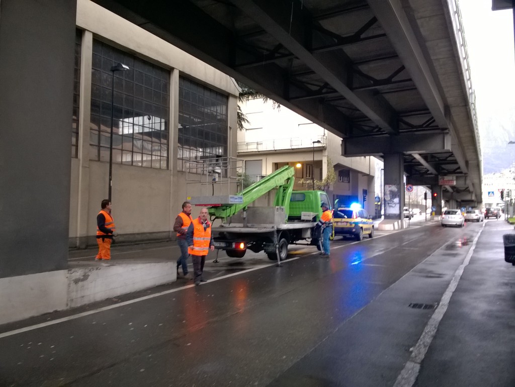 LECCO – Personale dell’Anas al lavoro lunedì mattina sotto il ponte Manzoni per sostituire i pluviali rotti. In questi giorni di precipitazioni, infatti, l’acqua piovana cascava sulla sottostante via della Pergola.