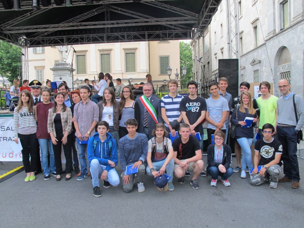 LECCO – Anche quest’anno, in occasione dell’iniziativa “Studenti in Piazza” che ha visto gli studenti animare dalla mattinata la centrale Piazza Garbialdi con stand ed esibizioni, si è tenuto il momento di consegna della Costituzione Italiana da parte del Sindaco di Lecco Virginio Brivio ai giovani che hanno appena compiuto i 18 anni. Una tappa importante, come ha spiegato il primo cittadino, vista la nuova consapevolezza che la maggiore età porta, insieme a nuovi diritti, primo tra tutti quello al voto.