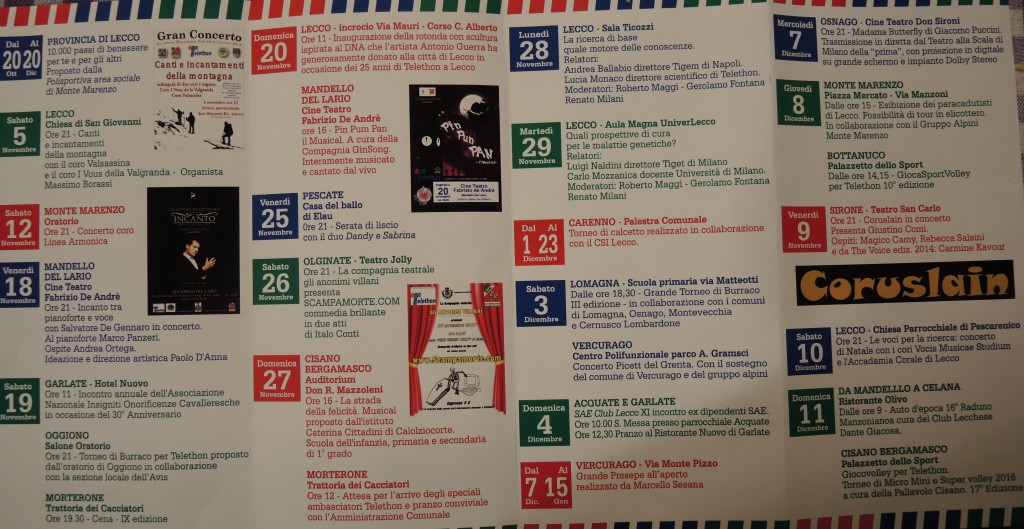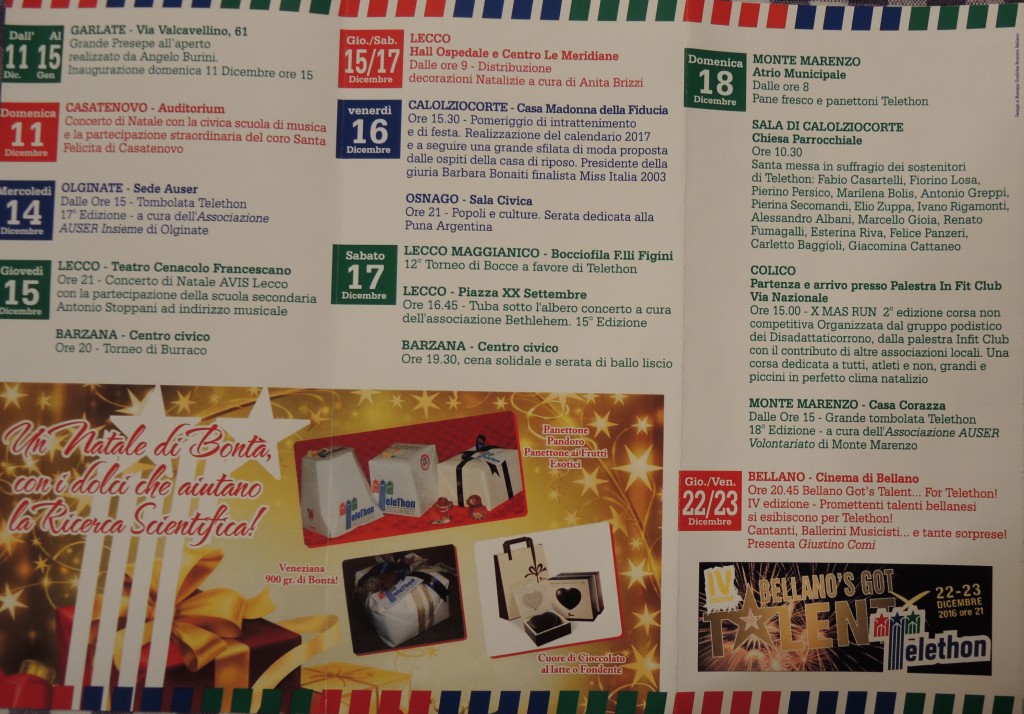 Bellano sarà invece ospite del primo “Bellano’s got talent”, in programma il 22 e il 23 dicembre al Cinema di Bellano: promettenti talenti bellanesi si esibiranno per Telethon, lo spettacolo è assicurato!