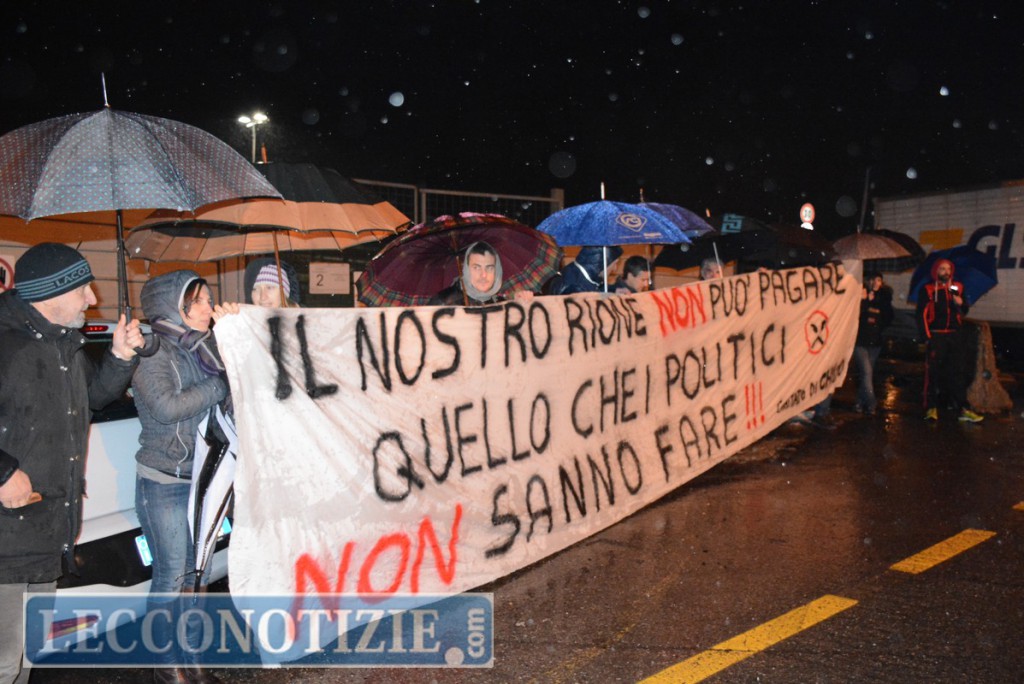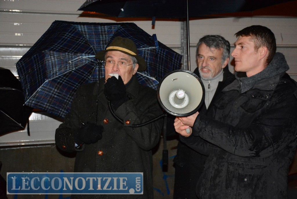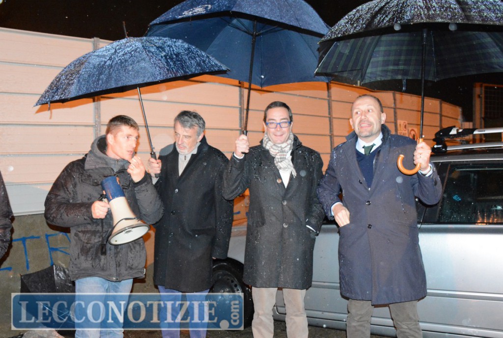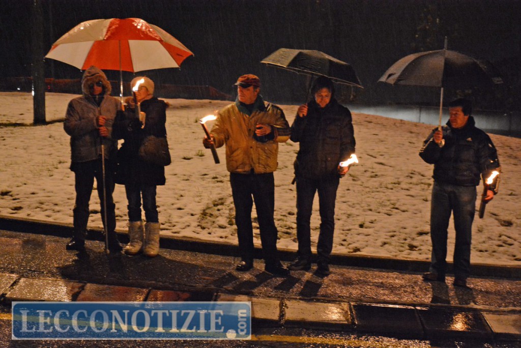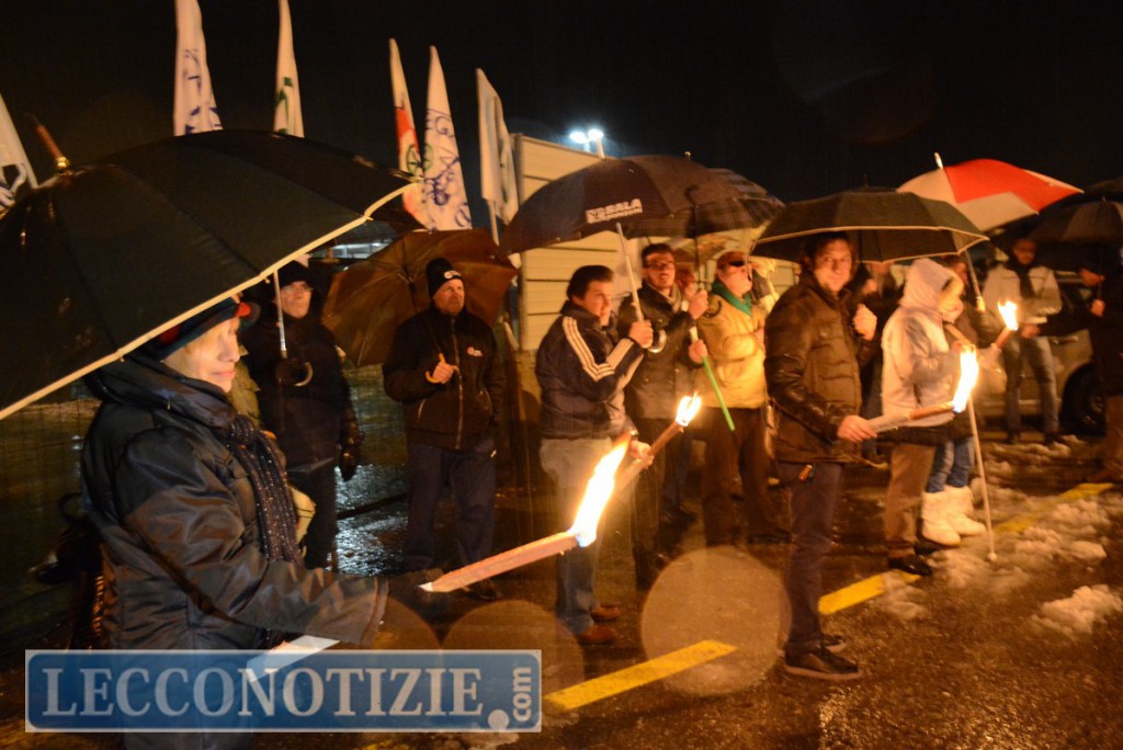 LECCO – L’ombrello in una mano, la fiaccola nell’altra, esponenti e militanti della Lega Nord di Lecco e del Calolziese, nonostante il forte acquazzone che ha insistito anche in serata, hanno mantenuto fede all’annuncio della manifestazione, fissata per lunedì, dinnanzi al cantiere della nuova Lecco-Bergamo a Chiuso.
