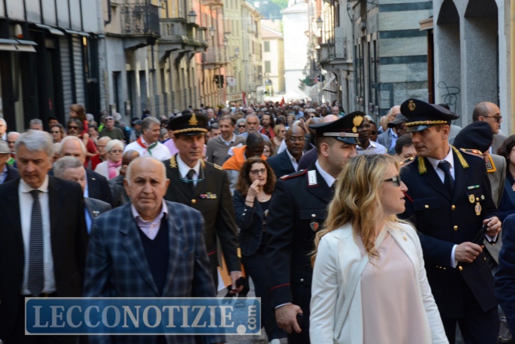 A Lecco le celebrazioni hanno preso avvio in mattinata con la Santa Messa al Santuario della Vittoria, poi con il tradizionale corteo guidato dal Corpo Musicale Manzoni, che ha attraversato il centro storico per giungere al monumento dedicati ai caduti in Largo Montenero, infine l’arrivo nel cortile del palazzo comunale dove tre studenti dell’istituto Stoppani hanno letto il decreto regio con il quale è stata assegnata a Lecco la medaglia d’argento alla Resistenza. Presente anche una delegazione dell’Associazione Ivoriani della Provincia di Lecco.