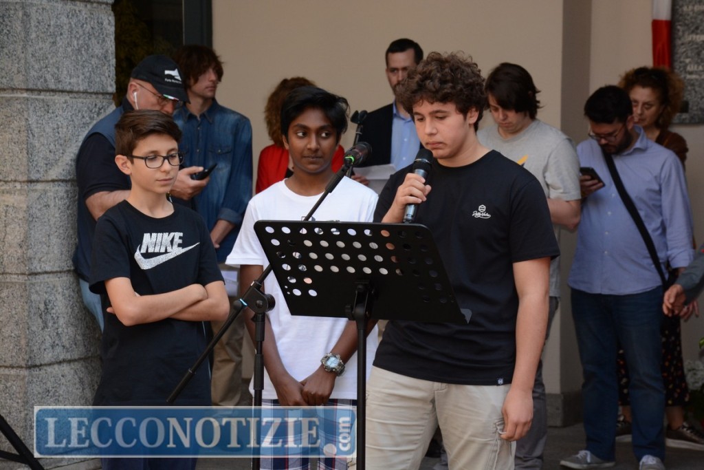 Di fronte al rinvigorirsi dei movimenti di estrema destra, “l’antifascismo non è cosa antiquata come spesso ci sentiamo dire – è intervenuto Enrico Avagnina, presidente provinciale dell’Anpi di Lecco, l’associazione dei partigiani – non lasceremo che le troppe miserie di oggi offuschino la memoria di ieri. Oggi si limano gli spigoli al fascismo, si ammettono a malincuore le leggi razziali come se fossero qualcosa di marginale, quello fu invece il punto di partenza e oggi vediamo il fascismo tornare nella sua intima essenza, quella razzista”.