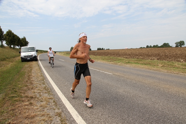 “Abbiamo corso con un paesaggio a fare da cornice fatto di distese coltivate a girasoli e vigneti. Dopo il riposo tutto procede bene, abbiamo recuperato i km persi e un temporale bagna gli ultimi passi faticosi”.