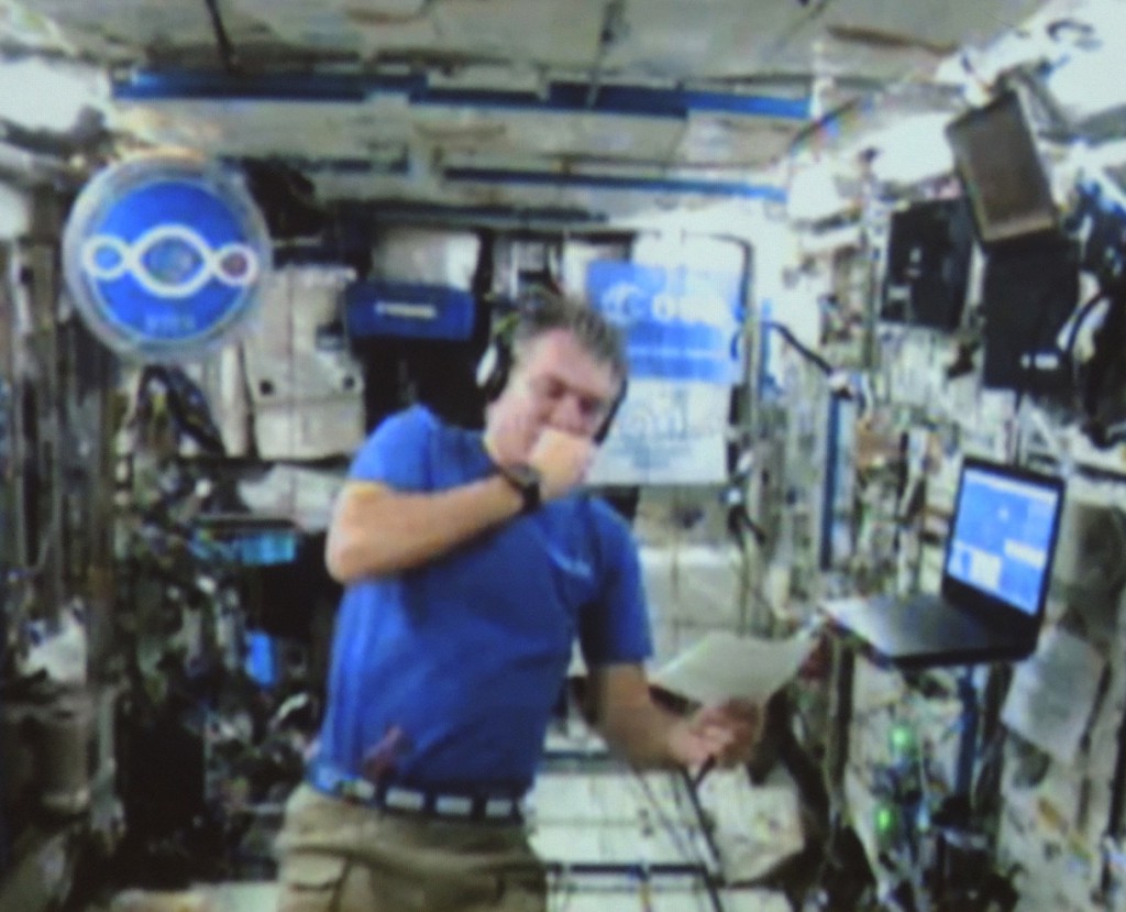 Il contatto è avvenuto intorno alle 16 ed è durato una decina di minuti. Nella sala del Planetario è arrivato prima l’audio con la voce di Nespoli, pochi minuti dopo – il tempo che la ISS transitasse proprio sopra l’Italia – anche il video: una vera e propria novità per Lecco dove prima di oggi non erano mai stati effettuati collegamenti video.