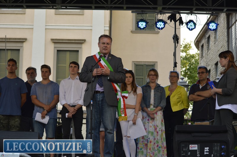 Terminata la lettura del discorso di Calamandrei, il sindaco di Lecco Virginio Brivio ha preso la parola: “Nel referendum del 2 giugno 1946 i voti favorevoli alla repubblica a Lecco furono il 75%, ben al di sopra della media nazionale, questo significa che nel nostro territorio c’è una tradizione da rinnovare anche oggi con l’aiuto dei giovani, che nei primi articoli della Costituzione possono trovare le indicazioni per risolvere molte fatiche  e tensioni che caratterizzano questo momento storico della nostra convivenza”.