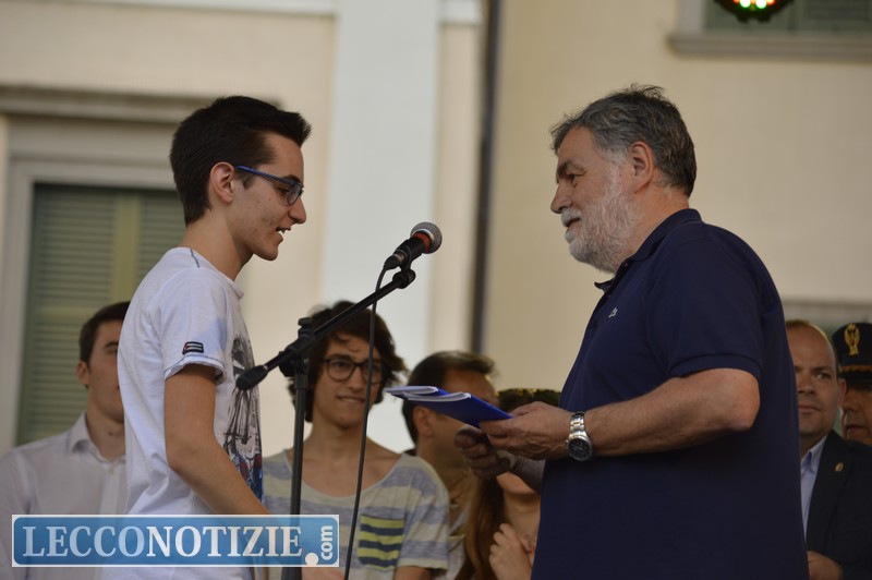 Terminato l’intervento delle autorità i neodiciotteni sono saliti sul palco e hanno ricevuto dal sindaco Brivio, dal vicesindaco Bonacina, dal vicequestore aggiunto Giani, dagli assessori Gaia Bologini e Anna Mazzoleni e dai consiglieri Giorgio Gualzetti, Antonio Colombo,  Pier Luigi  Lococciolo e Alberto Anghileri le copie della costituzione italiana con l’augurio di farne buon uso.