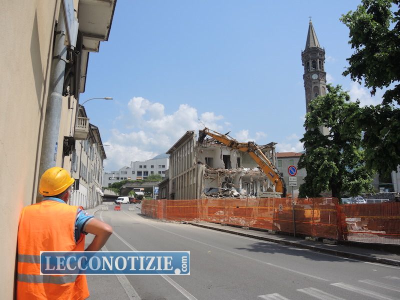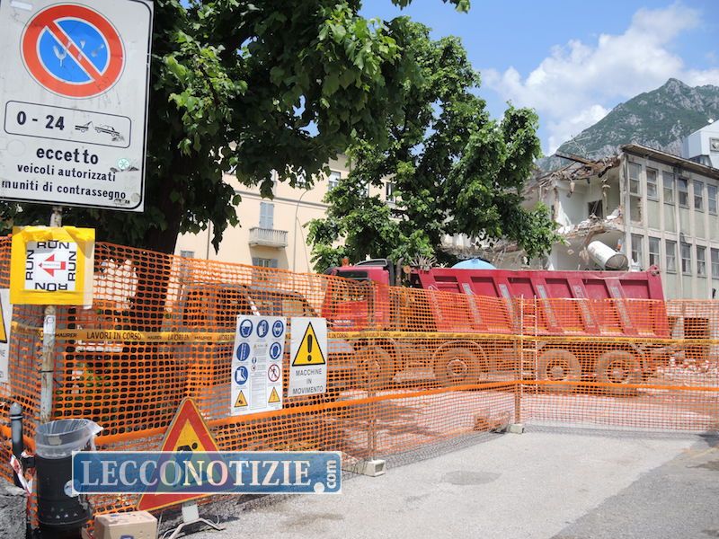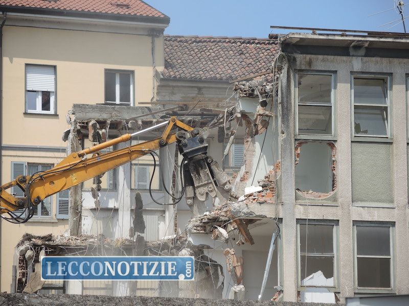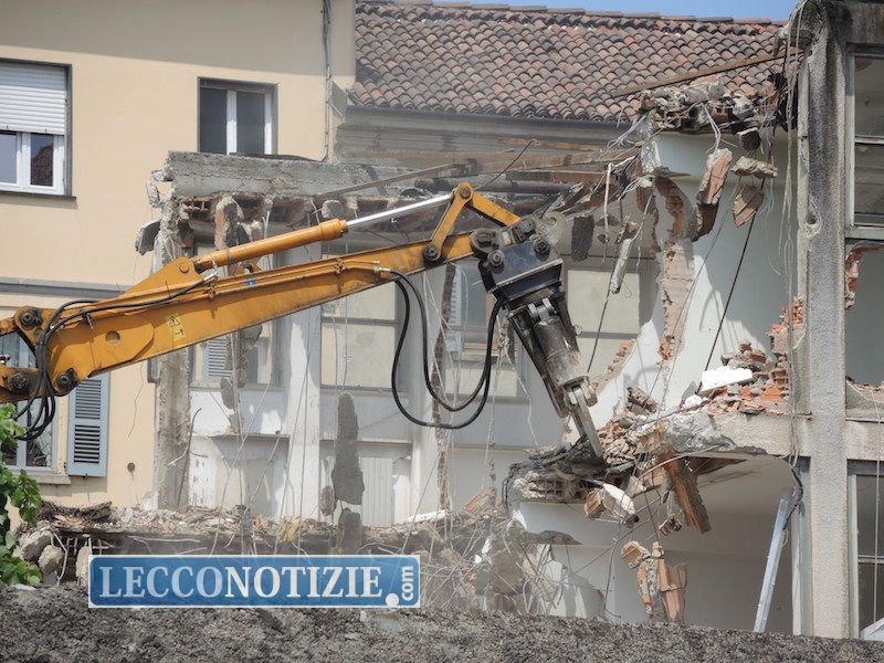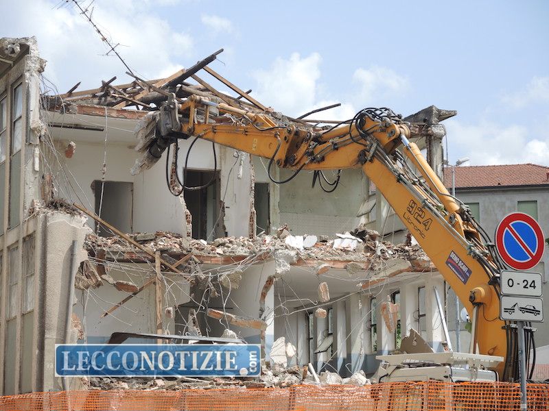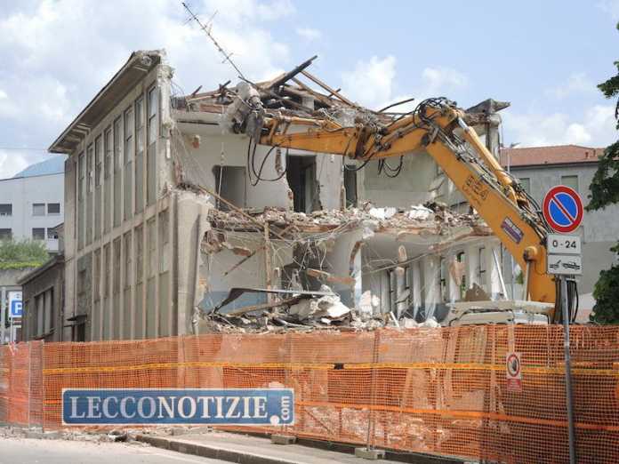 LECCO – E’ cominciata questa mattina, mercoledì 30 maggio, la demolizione del vecchio fabbricato che sorge in via Parini, accanto al parcheggio dell’ex Serpentino. Due gli stabili, oggi di proprietà comunale, che stanno per essere rasi al suolo.