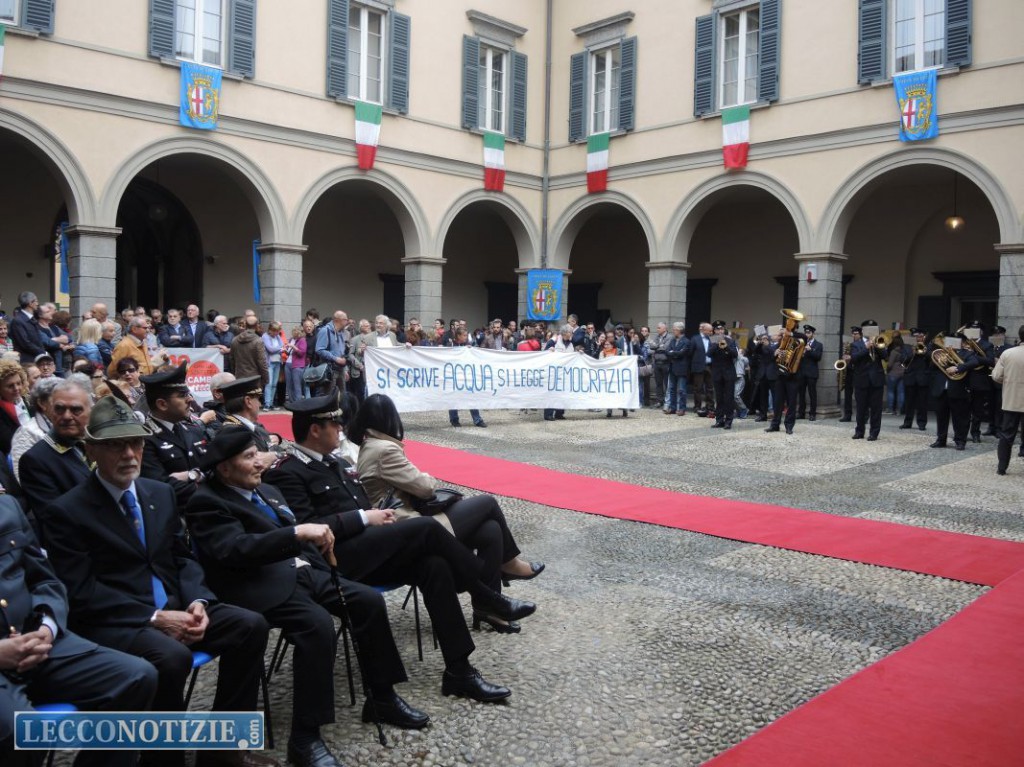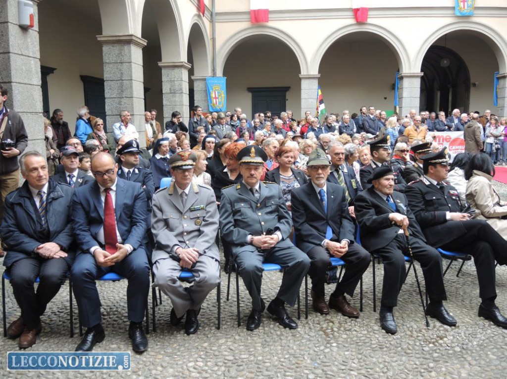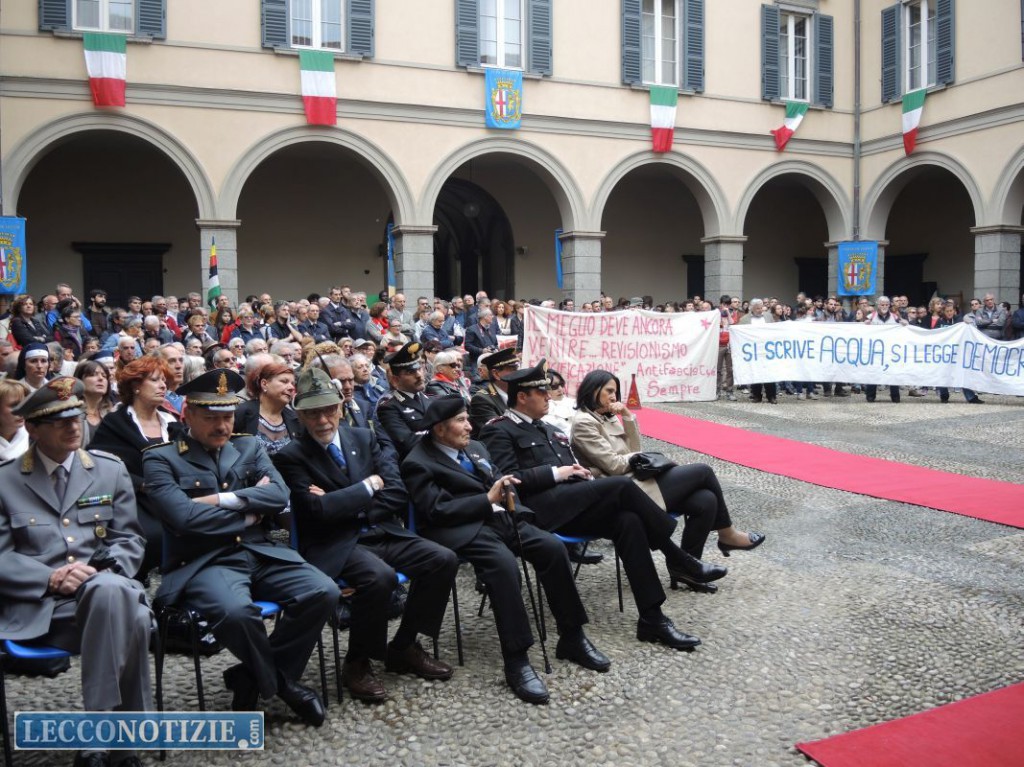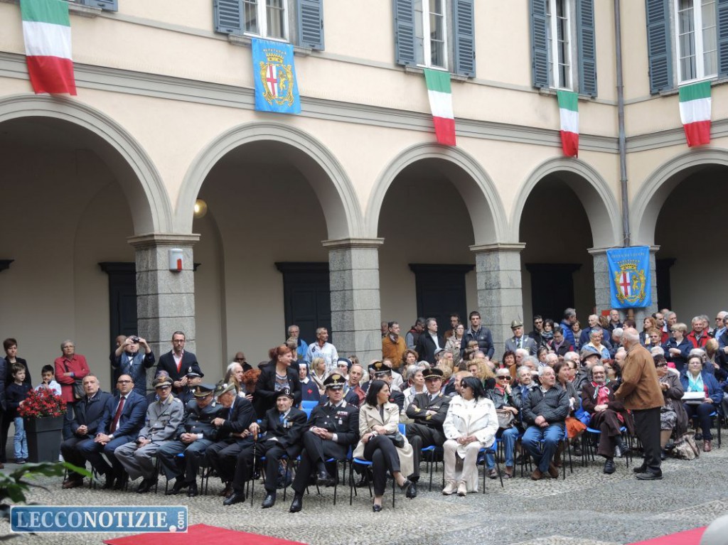 Il corteo si è quindi diretto al Palazzo Comunale, dove in un’affollata corte interna si sono tenuti i discorsi del Sindaco di Lecco Virginio Brivio, la consigliera provinciale Anna Mazzoleni, il Vice Prefetto Vicario di Lecco Gennaro Terrusi e il Presidente dell’Anpi provinciale Enrico Avagnina.
