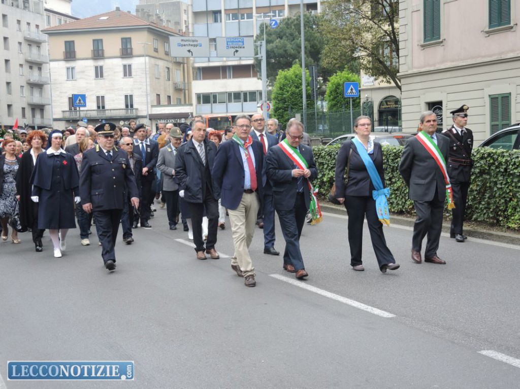 LECCO – Autorità civili e militari riunite insieme a centinaia di cittadini nel tradizionale corteo che si è svolto per le vie del centro città in occasione del 70° anniversario della Liberazione.