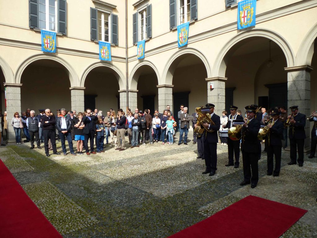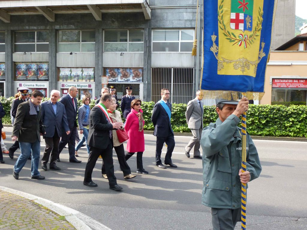 Il corteo, accompagnato dal Corpo Musicale cittadino “Alessandro Manzoni” è quindi ripartito per raggiungere Palazzo Bovara, dove si è svolta la celebrazione ufficiale con gli interventi del Sindaco di Lecco Virginio Brivio, del Prefetto Antonia Bellomo, dell’assessore provinciale Stefano Simonetti e di Enrico Avagnina, Presidente dell’A.N.P.I. della provincia di Lecco.