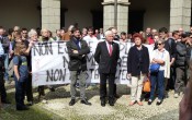 Un intervento, quello del sindaco Brivio, al quale hanno prestato particolare attenzione gli esponenti di Qui Lecco Libera: al passaggio centrale relativo alla difesa del bene comune dai “nuovi invasori”, identificati dal primo cittadino negli “interessi corporativi, l’esasperazione dell’individualismo, l’illegalità diffusa e le mafie nelle multiformi presenze che esse si sono date si stanno dando” – con un chiaro riferimento ai recenti fatti giudiziari che hanno toccato anche l’amministrazione lecchese (con l’arresto del consigliere comunale Ernesto Palermo) – è stato sollevato uno striscione recante lo slogan “Non essere complici, non mentire, non restare ciechi”. (VEDI ARTICOLO)