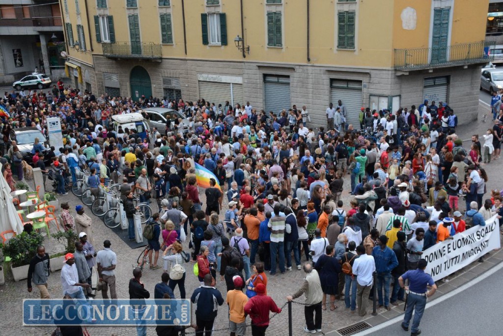 Una manifestazione che ha avuto inizio di fronte all’ex palazzo delle ferrovie, oggi centro di prima accoglienza, proprio dove la Lega Nord, qualche giorno fa, aveva inscenato la propria protesta contro i continui arrivi di richiedenti asilo in città e in provincia di Lecco.