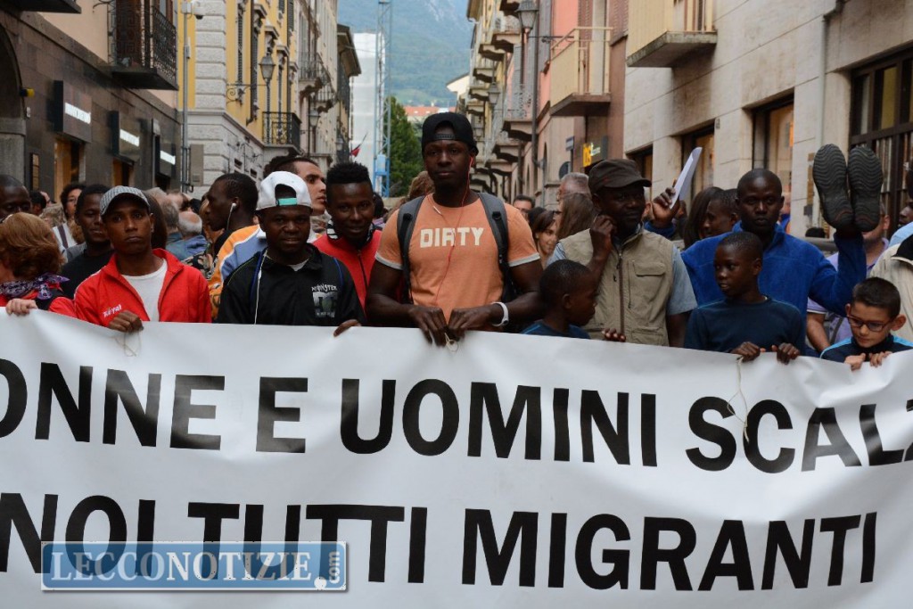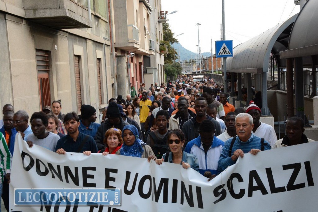 Un vero fiume di persone, ben mille in cammino, rigorosamente a piedi nudi, per esprimere solidarietà ai migranti accolti nel lecchese.