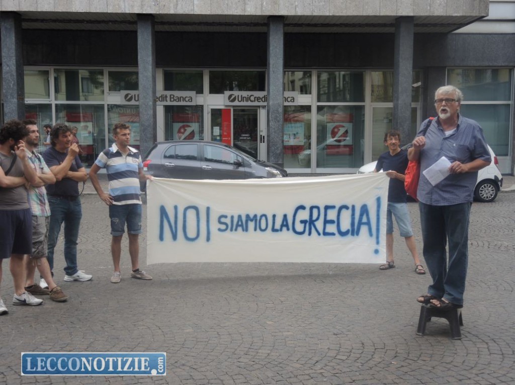 LECCO – “La vittoria del No al referendum greco è la vittoria di tutti i popoli europei”. È questa la convinzione che ha animato il presidio informativo organizzato in Piazza Garibaldi nel tardo pomeriggio di venerdì 3 luglio, a cui hanno preso parte esponenti delle realtà associative, di partito e dei sindacati.