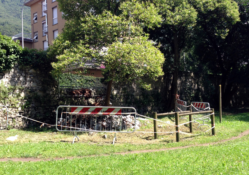 LECCO –  Sono passati più di due mesi dal 27 aprile giorno in cui una Ferrari ha aperto un varco nel muro di Villa Gomes a Maggianico schiantandosi contro di esso (vedi articolo), ma alla “breccia di porta Gomes”, così definita da un nostro lettore (vedi articolo), non è stato fatto alcun lavoro tranne un semplice transennamento con l’enorme buco nel muro ancora ben visibile.