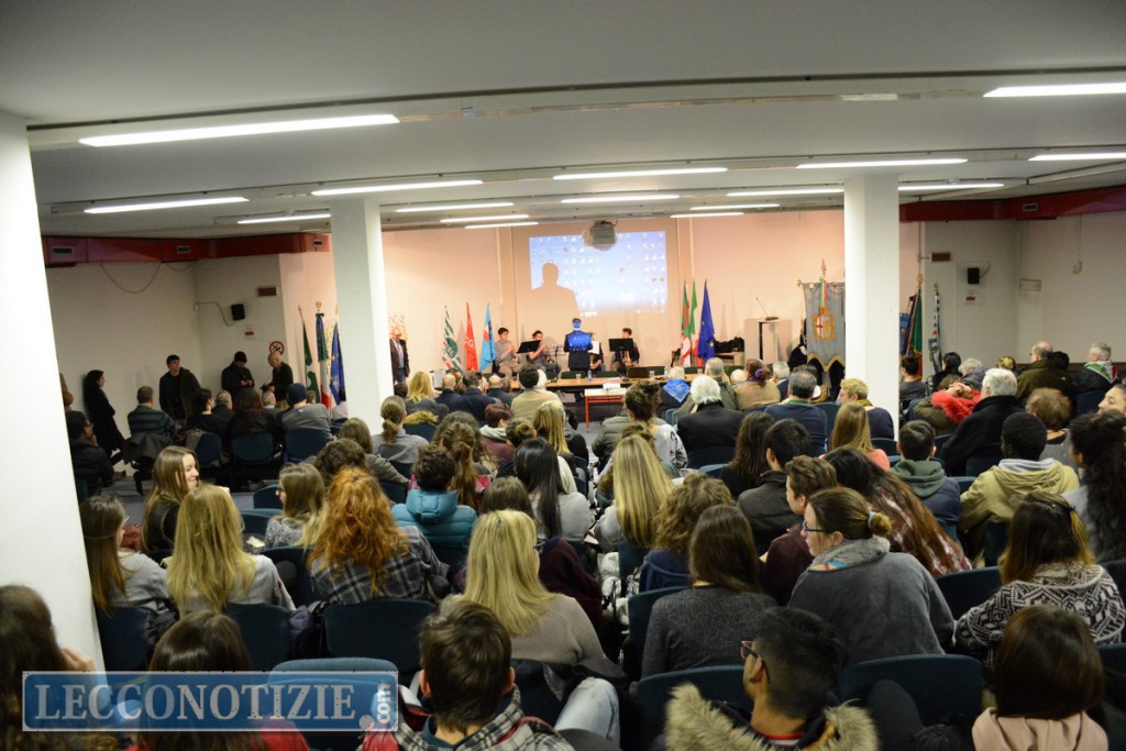 La cerimonia è poi proseguita nell’Aula Magna ex Bovara, con il coinvolgimento degli studenti dell’IIS Bertacchi e degli Istituti lecchesi che partiranno per il Viaggio per la Memoria 2017 da Lecco ad Auschwitz.