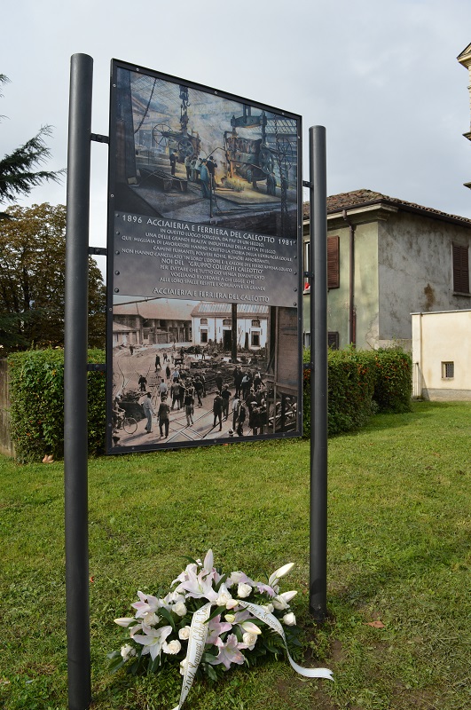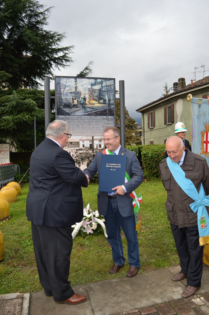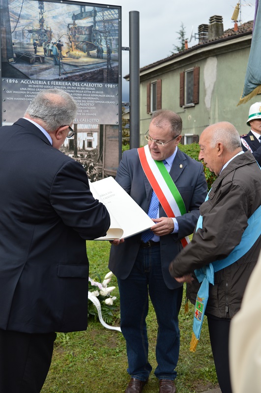 Durante l’inaugurazione Giuseppe Barlassina, responsabile antinfortunistica e sicurezza sul lavoro dal 1974 al 1992 ed ex dipendente dell’acciaieria, ha donato al sindaco un libro intitolato “S.A.Acciaieria e ferriera del Caleotto” che racconta la storia dell’acciaieria dal 1896 al 1936.