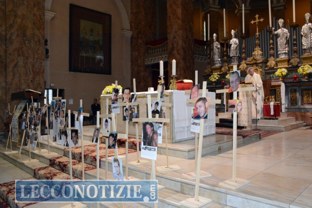 Per questo, venerdì, Polisportiva e Associazione Matteo La Nasa, hanno portato a Lecco “La via delle Croci” che alle 18.30 ha avuto inizio dalla scalinata della Basilica di S. Nicolò, con un corteo silenzioso partecipato dai familiari, dalle istituzioni e dai rappresentanti delle forze dell’ordine- Ognuno di loro ha portato verso la chiesa una croce e con essa il volto di chi oggi non c’è più. Mons. Franco Cecchin ha celebrato una messa in loro ricordo.