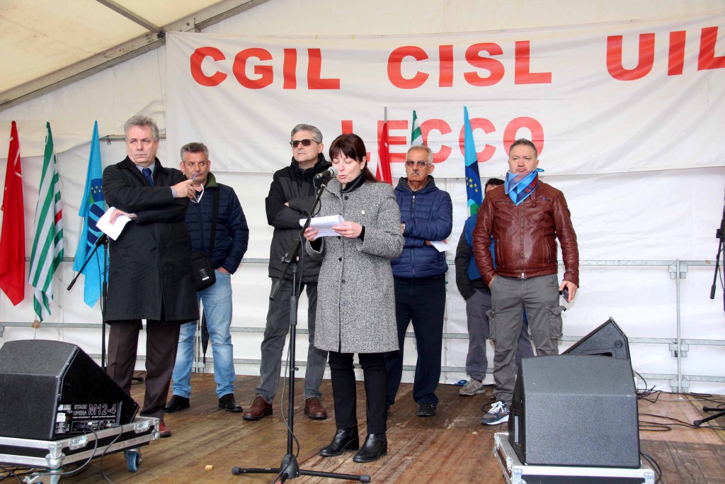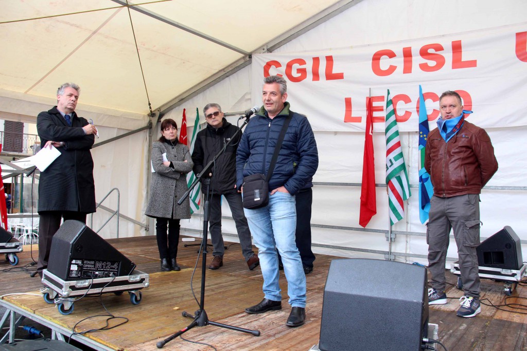 L’iniziativa si è poi spostata nel centro storico con gli interventi dalla piazza, tra gli altri, del vicesindaco Francesca Bonacina e del segretario generale della CGIL di Lecco Wolfango Pirelli. Al centro dei discorsi gli esuberi annunciati dall’azienda moltenese, la situazione dei lavoratori della grande distribuzione e dei giovani senza occupazione.