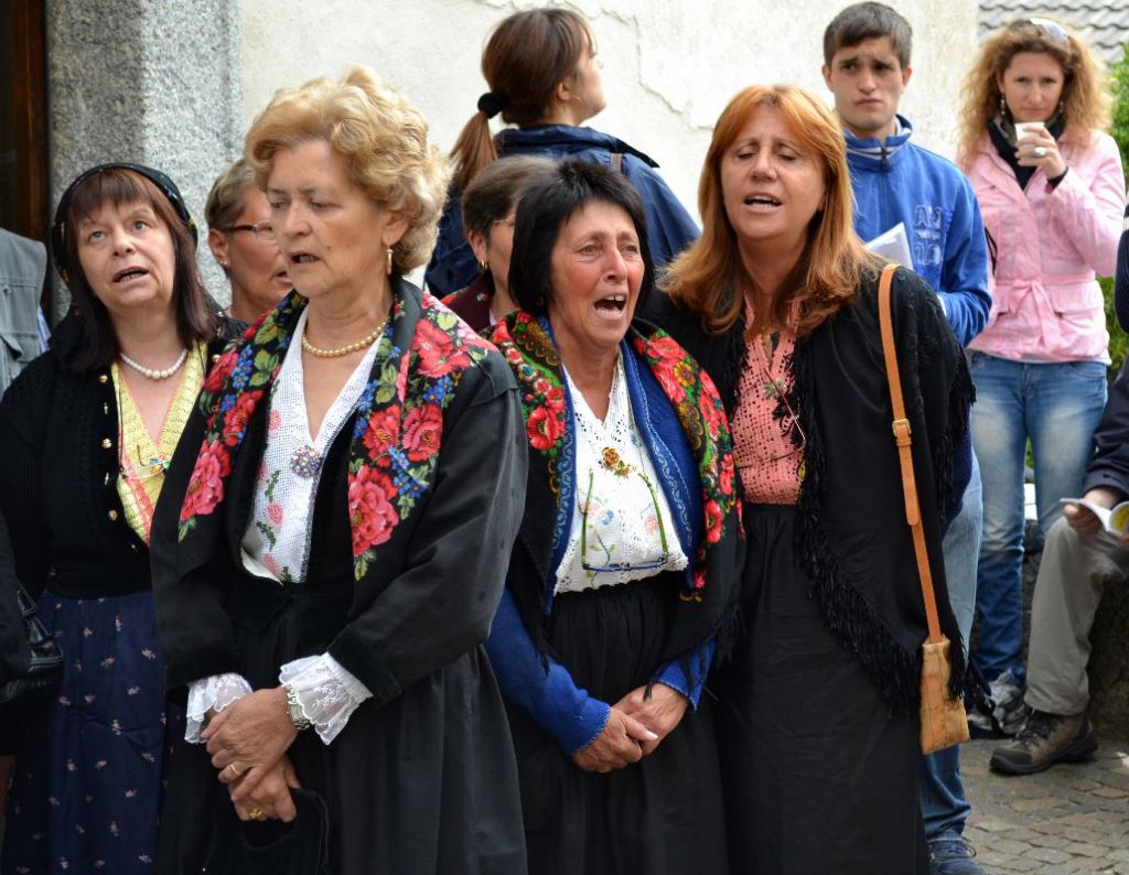 Una giornata di riflessioni ma anche di sorrisi: quelli regalati nella piccola chiesa di San Bernardino a Sueglio dal simpatico cantastorie Raffaele Nobile, la cui esibizione dentro e fuori l’edificio è stata preceduta dai brani sacri e profani proposti dai cantori della Valvarrone nei loro caratteristici e tipici costumi.