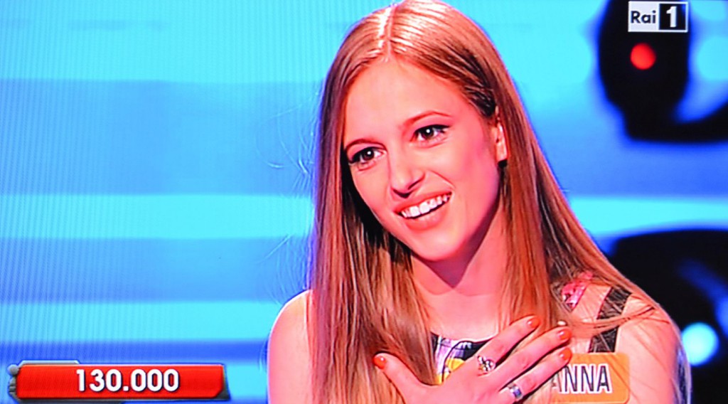 Giunta così alla “ghigliottina” con un montepremi di 130.000 euro, ha dimezzato tre volte su cinque e alla fine si è ritrovata con la somma di 16.250 euro, che peraltro avrebbe vinto soltanto nel caso in cui avesse indovinato la parola attinente a tutte e cinque le definizioni che le erano state presentate.