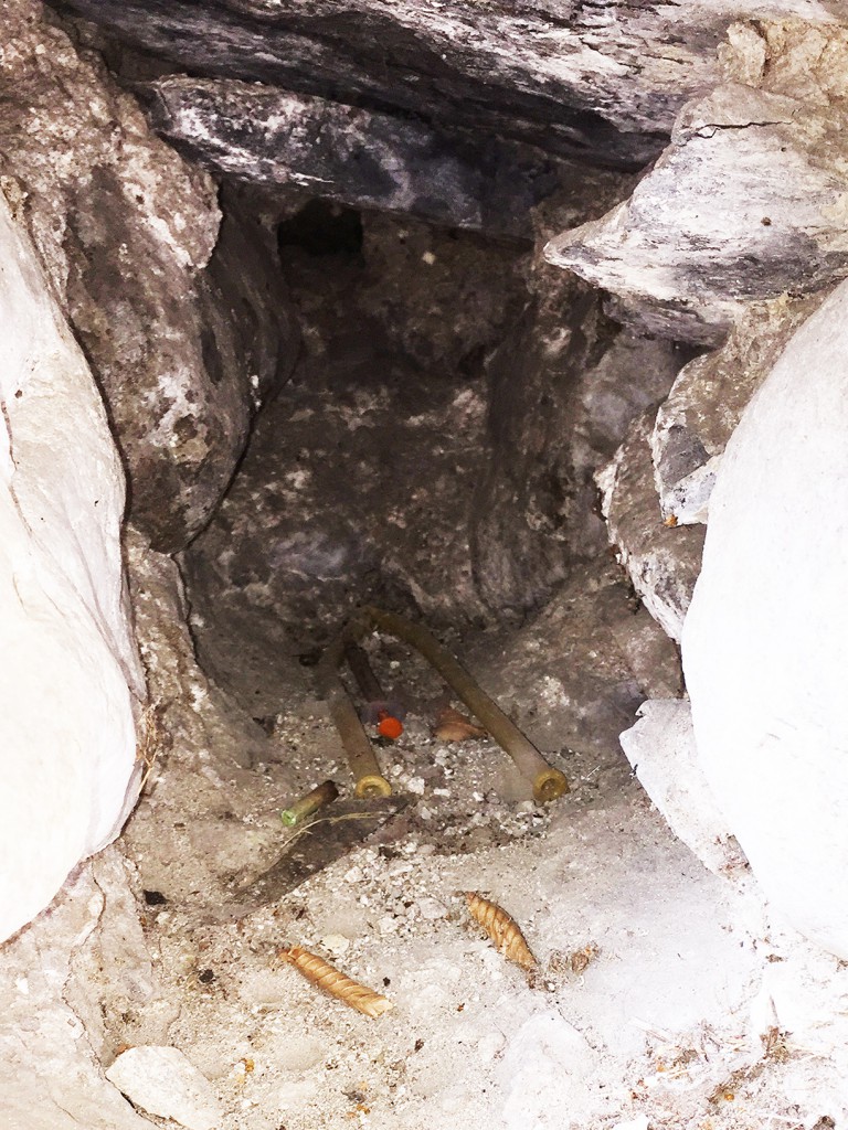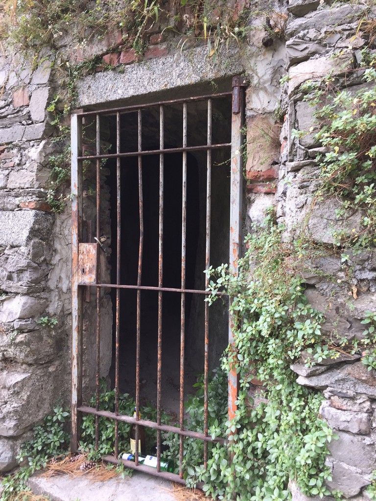 Decido di fare un giro verso la parte più bassa e nascosta per vedere l’antica torretta di guardia, o quel poco che si vede dietro le piante. Peccato che proprio dietro la torretta ci siano i resti di un pasto consumato in compagnia, con sacchetti, lattine e cartacce. Risalgo allora verso la parte alta per vedere il passaggio segreto che portava verso la casa del Governatore (ovvero la sede attuale della Biblioteca) dove qualche “bontempone” ha lasciato almeno tre bottiglie di vetro sulla porta mezza sgangherata che protegge appunto il passaggio. Salgo ulteriormente fino a ritrovarmi sotto la via Bovara, all’altezza dell’antico “Canalotto” di Porta Nuova. Noto dei fori nelle mura dovuti probabilmente a sassi caduti in passato. Incuriosito do un’occhiata e mi accorgo che in uno di questi vi siano abbandonate bottiglie di vetro, mentre in un altro spunta un laccio emostatico con relativa siringa. Il buon senso mi dice che a questo punto sia meglio risalire sulla strada.