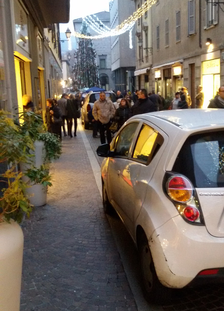 “Buonasera, ho più volte segnalato al Sindaco e ai vigili urbani una situazione secondo me inaccettabile: A Lecco non esiste un’area pedonale degna di una città che vuol considerarsi turistica!