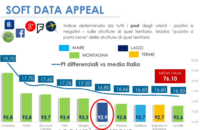 Ed è proprio tra le località lacustri che compare Lierna come protagonista della categoria per miglior risultato nell’indice “Soft Data Appeal” elaborato dall’Osservatorio Immobiliare e che mostra “quanto si parla bene” di quel territorio, un indice determinato da tutti i post e le recensioni degli utenti (positivi e negativi) sulle strutture ricettive e turistiche.