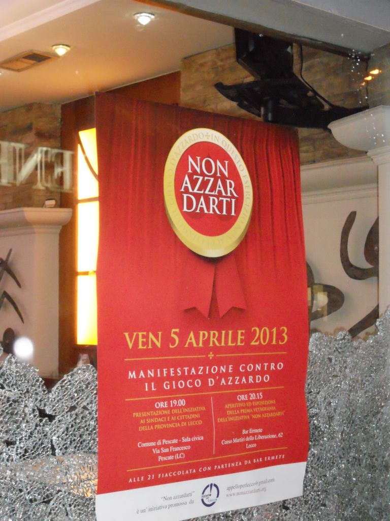 Dopo un aperitivo insieme al sindaco di Lecco Virginio Brivio presso il Bar Ermete, uno degli esercizi lecchesi che hanno aderito alla campagna “Non azzardarti” esponendo sulla propria porta la vetrofania con il logo dell’iniziativa, il corteo si è avviato lungo Corso Martiri, passando davanti a una delle sale da gioco presenti nel rione di Pescarenico e concludendosi in Piazza Era.