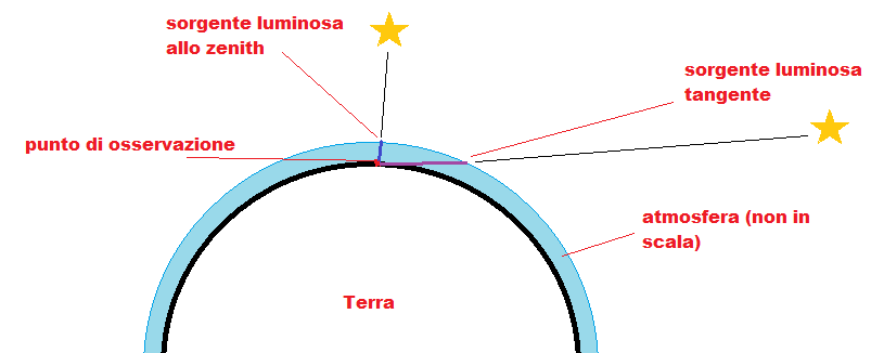 “Se l’oggetto osservato è tangente alla Terra, ovvero in prossimità dell’orizzonte per chi osserva, la luce perderà maggiori informazioni nell’attraversare l’atmosfera, e verrà assorbita maggiormente la radiazione nello spettro del colore blu.  Il risultato – conclude – è che si vedrà l’oggetto rosso e sovente anche deformato. Questo concetto si applica anche alle stelle o ai pianeti”.
