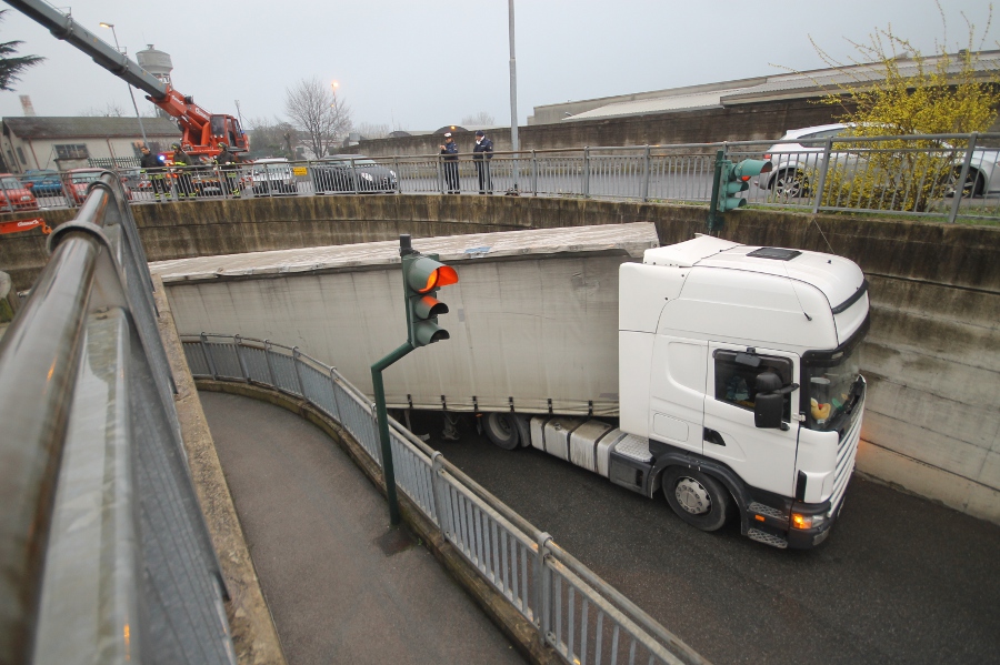Erano passate da poco le 17, quando il mezzo giunto dallo stradone di via Filiberto nel rione di Maggianico ha imboccato via Gomes e quindi ha cercato di superare la ferrovia imboccando lo stretto sottopasso finendo per rimanere bloccato.