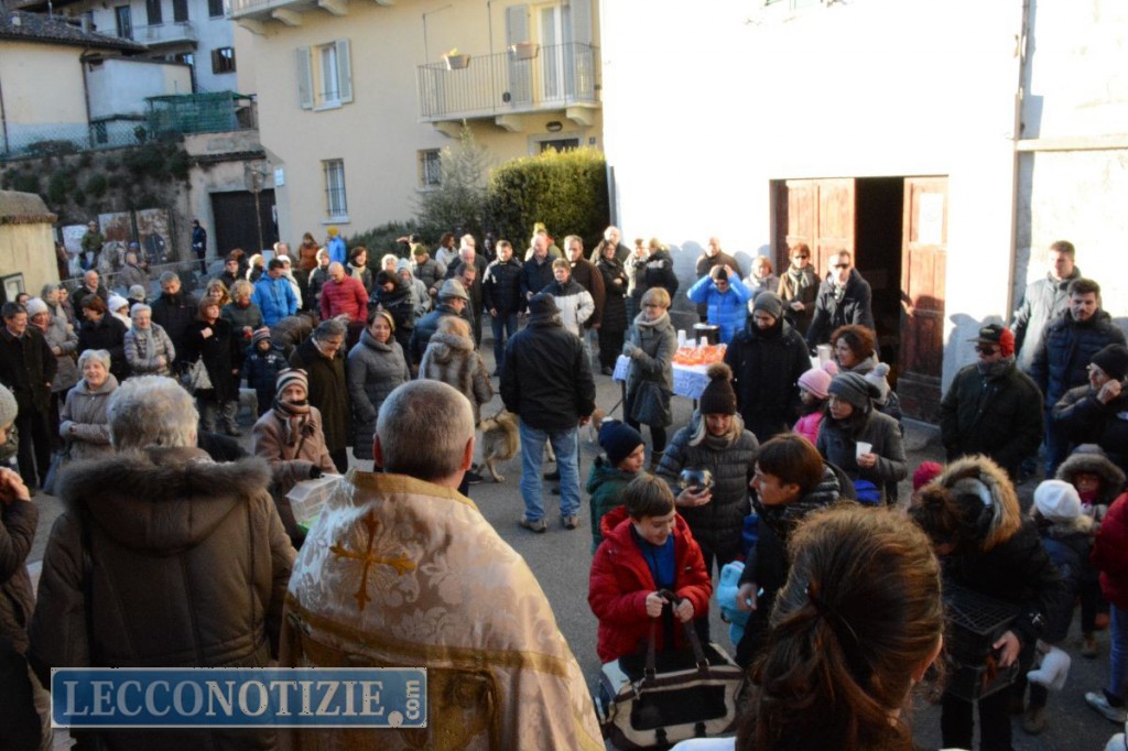 Nella chiesa lecchese è conservata una reliquia del santo esposta proprio in occasione del 17 gennaio e con la quale don Emilio Colombo, responsabile della comunità pastorale, ha benedetto i presenti alla celebrazione della santa messa, prima di consacrare il bestiame. Al termine della celebrazione sono state distribuite le mele di San Antonio e offerto un rinfresco ai fedeli, con dolci e the caldo.