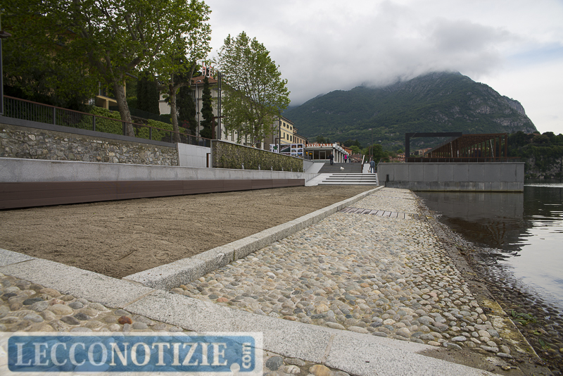 Una passeggiata ribassata al confine con il lago, dove spazi verdi giochi d’acqua, una ciclopedonale e persino una spiaggetta hanno completamente cambiato volto al lungolago malgratese.