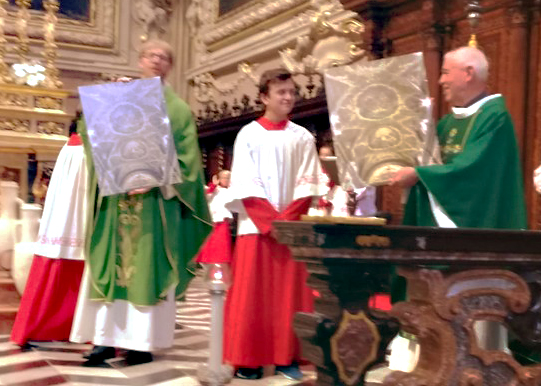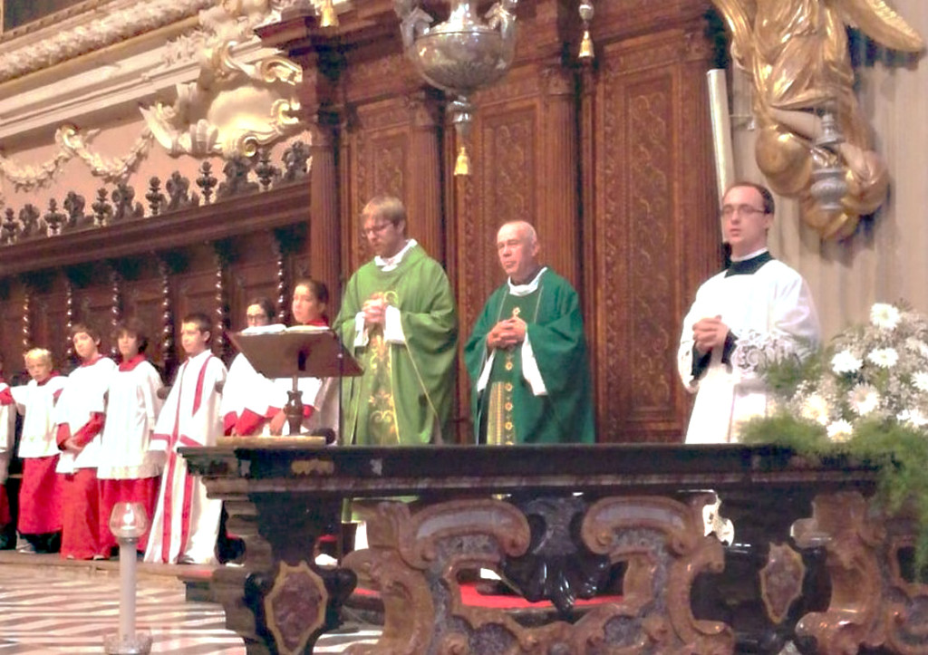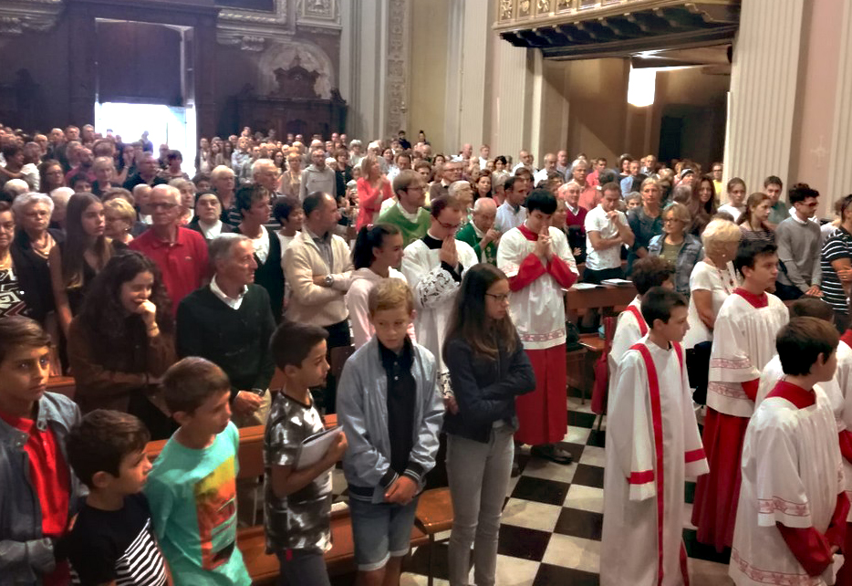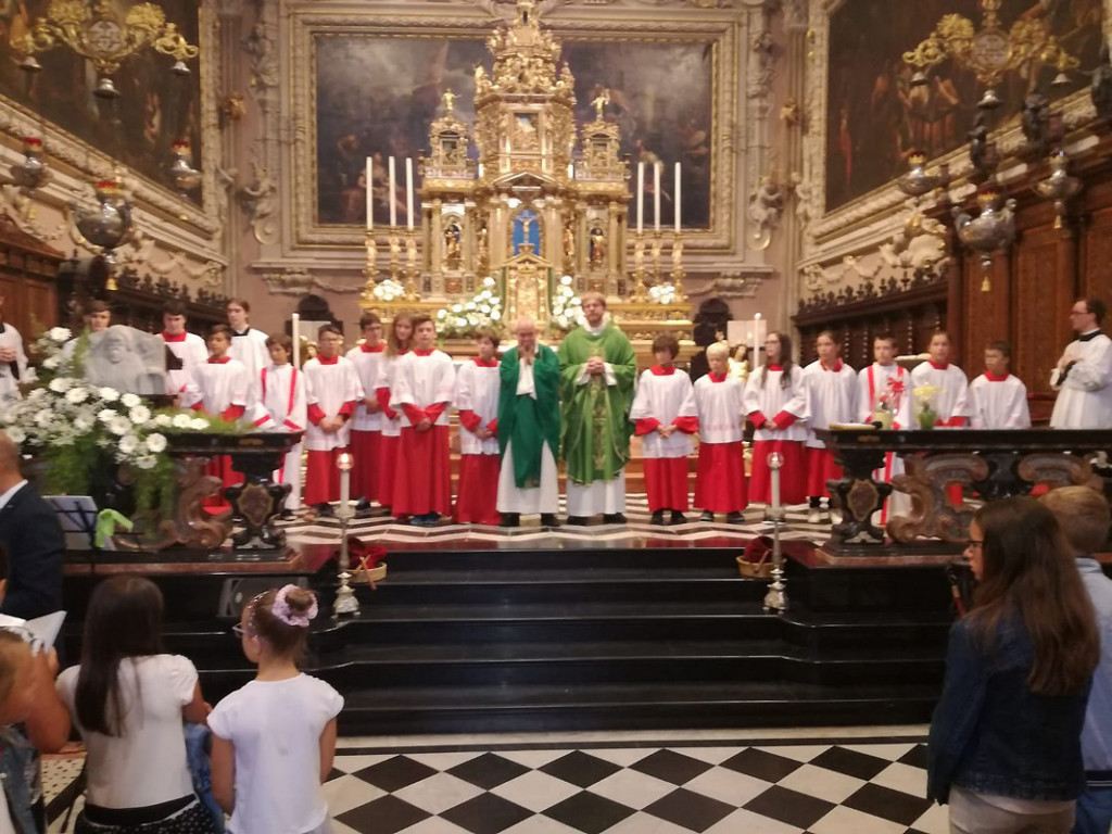 La chiesa di San Lorenzo era colma domenica mattina per la Santa Messa celebrata dai due religiosi e animata dalle voci di due cori.