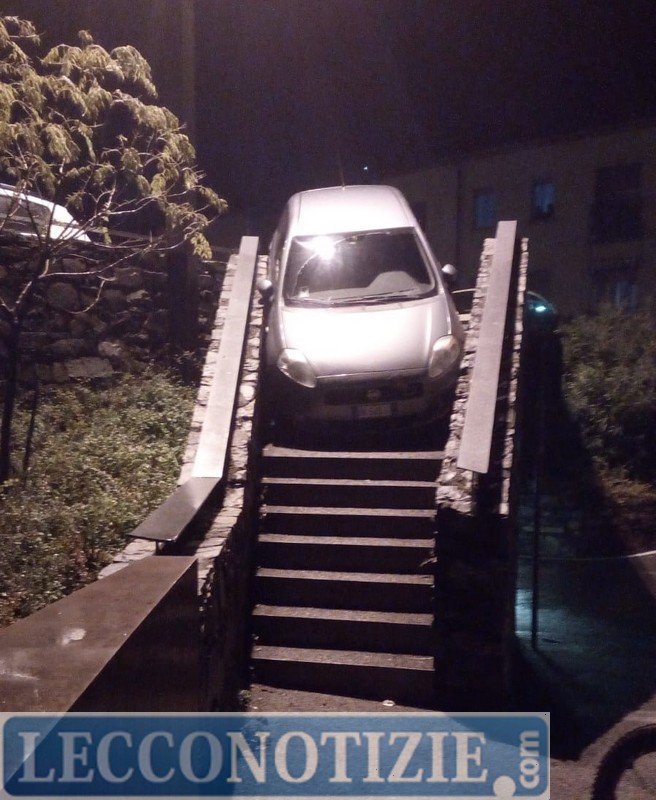 MANDELLO – Una disavventura decisamente singolare quella capitata ad un automobilista mercoledì sera a Mandello, finito per incastrarsi con la propria vettura in discesa su una scalinata pedonale.