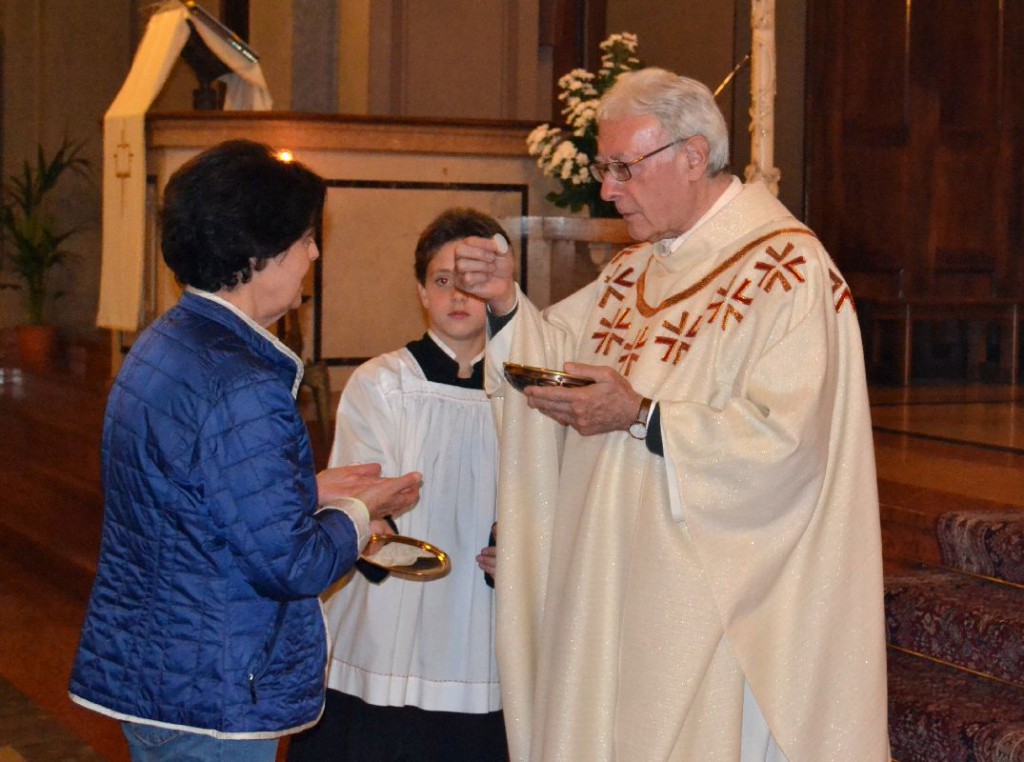 Quindi la lettura di un messaggio augurale pervenuto da suor Maria Letizia Gatti della Comunità di San Biagio sopra Subiaco. “Idealmente qui c’è anche lei– ha detto il parroco – così come accanto a noi c’è padre Arcangelo Zucchi, del quale stasera utilizzeremo il calice che ha lasciato in dono alla nostra comunità parrocchiale”.