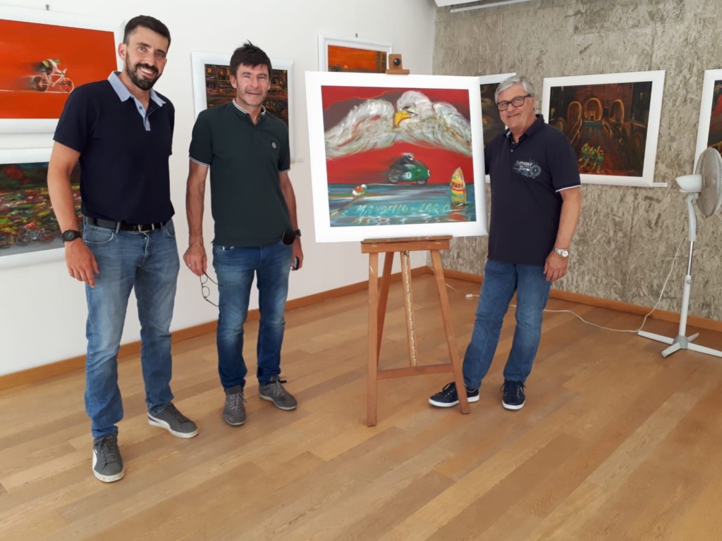MANDELLO – Visita speciale alla mostra di Tiziano Cantoni, inaugurata lo scorso fine settimana a Mandello: il campione mondiale di ciclismo, Gianni Bugno, ha fatto il suo ingresso martedì all’esposizione allestita presso la sala polifunzionale del Lido di Mandello.