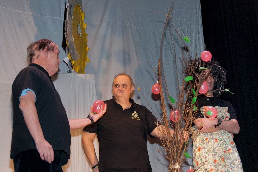 Con i ragazzi del laboratorio teatrale del “Gruppo amici degli handicappati” di Mandello si era così pensato di partecipare al “Rebirth-day” del 2013, allestendo uno spettacolo che avesse per tema il Paradiso, o per meglio dire… i Paradisi: quello passato, l’attuale e quello futuro.