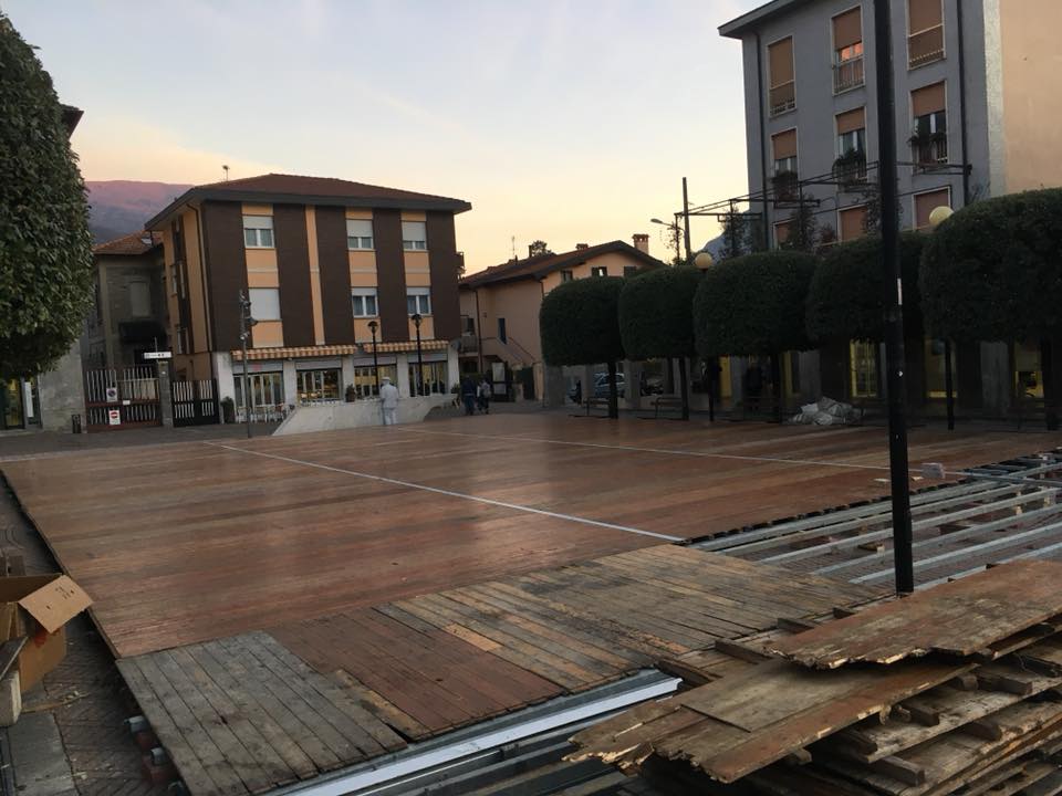 MANDELLO – Ci si prepara alle feste natalizie a Mandello e in questi giorni, davanti al Comune, sono in corso i lavori per la pista di ghiaccio che prestissimo accoglierà i pattinatori.
