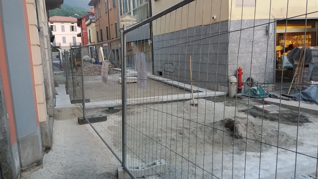 Via Parodi, nel tratto affacciato a Piazza della Repubblica, in centro Mandello, è chiusa dallo scorso 11 giugno, prima per i lavori ai sottoservizi poi per la nuova pavimentazione che di fatto allungherà la piazza, con il rifacimento degli attraversamenti pedonali, lì dove una volta il traffico era regolato dai semafori. Oggi la strada è fruibile dai pedoni.