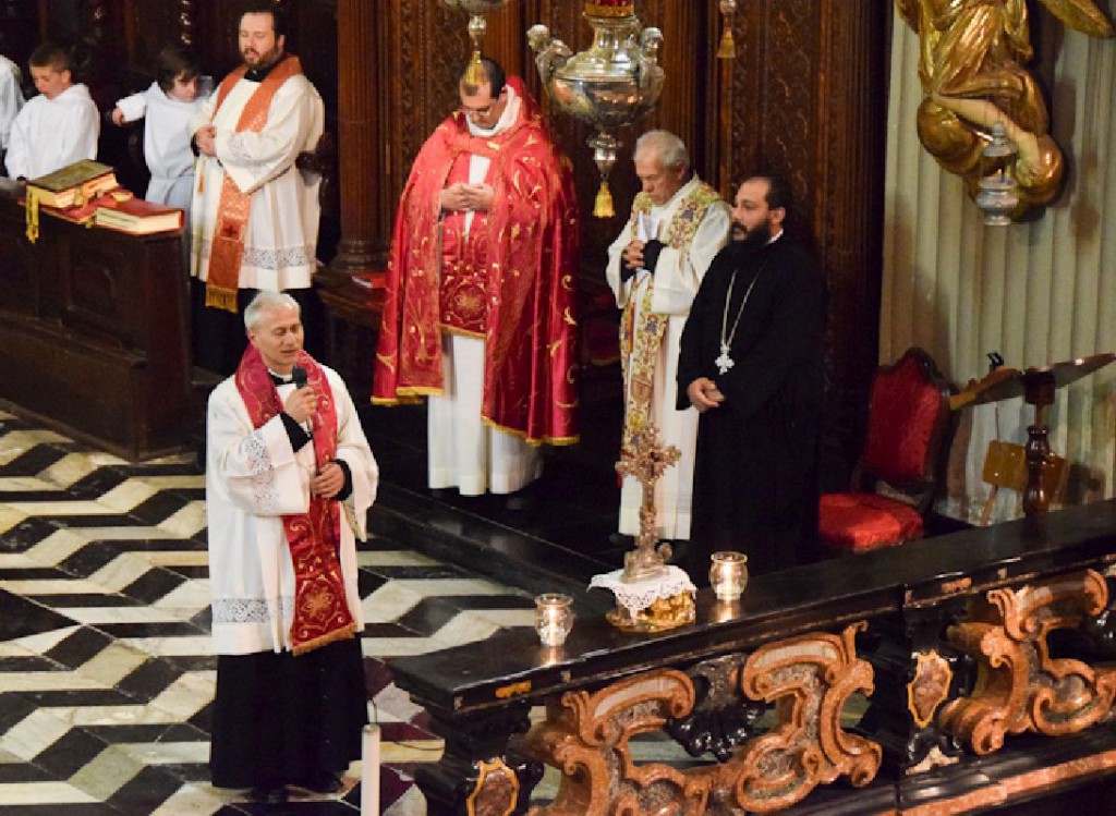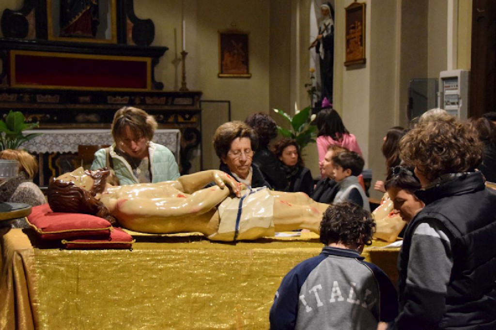 Una cerimonia ricca di suggestioni, con un’intera comunità raccolta in preghiera per celebrare il Venerdì Santo e alla quale ha partecipato – con i sacerdoti delle due parrocchie – anche padre Giuseppe, parroco della comunità copta ortodossa di Lecco e Mandello.