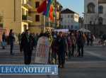 LECCO – Una piazza XX Settembre animata di suoni e colori, tante le persone che oggi pomeriggio hanno voluto partecipare alla Marcia della Pace. Alle 15 il ritrovo in centro città con il gruppo Arca Voice, il coro dei richiedenti asilo del Cas Ferrohotel, ad animare la piazza prima di ascoltare le toccanti testimonianze di due migranti che, rischiando la vita, sono riusci a raggiungere l’Italia.