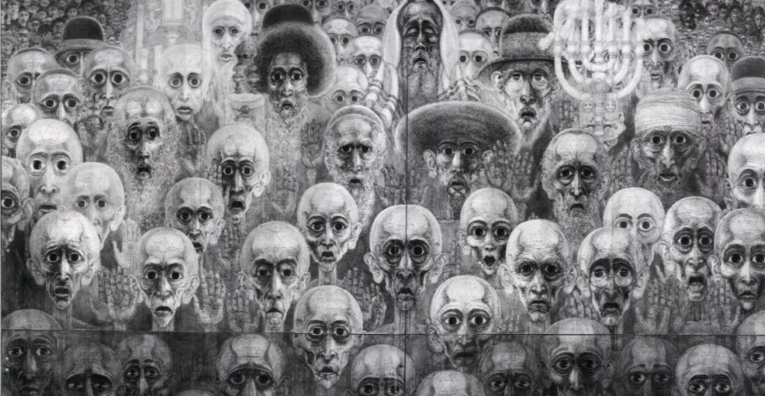 E così, ecco che in occasione de I Percorsi della Memoria un cospicuo corpus di quelle opere è ora visionabile grazie al Consorzio Villa Greppi: riproduzioni su stoffe di dimensioni varie, come dicevamo, e in cui prende forma la sofferenza, la violenza, la morte. Una rappresentazione delle persone ridotte a numero, di volti disperati e attoniti, di corpi affamati: un emozionante viaggio nei ricordi di un uomo nato a Raszkow, in Polonia, costretto a partecipare alla costruzione del lager di Auschwitz e a subire continui trasferimenti in diversi campi. Un uomo che per lunghi decenni ha accantonato in un angolo della memoria quelle immagini, quei momenti, per poi vederli riaffiorare solo nel 1993, quando colpito da una paralisi inizia un percorso di riabilitazione fisica e si trova a imprimere su carta situazioni prima rimosse.