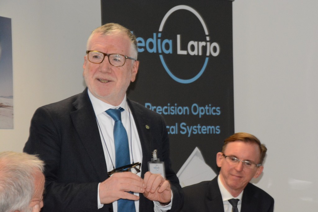 Presenti all’incontro Fabrizio Sala, Vice Presidente e Assessore alla Ricerca di Regione Lombardia, l’Eurodeputato Massimiliano Salini, il sindaco di Bosisio Parini Giuseppe Borgonovo, il Presidente Nazionale del CNR Massimo Inguscio, il Prorettore del Polo di Lecco del Politecnico di Milano Manuela Grecchi e il prof. Luca Magagnin del Politecnico di Milano, il Presidente dell’INAF Nicolò D’Amico e il direttore di INAF Brera Gianpiero Tagliaferri, la Direttrice INAF IASF, Bianca Garilli, il Presidente di Univer Lecco Vico Valassi, il Consigliere Regionale Mauro Piazza e Lorenzo Riva Presidente di Confindustria Lecco-Sondrio. Presenti anche il responsabile scientifico di Media Lario, Oberto Citterio e il responsabile tecnologico di Media Lario, Giuseppe Valsecchi, che insieme hanno dato vita, nel 1993, al progetto di Media Lario.